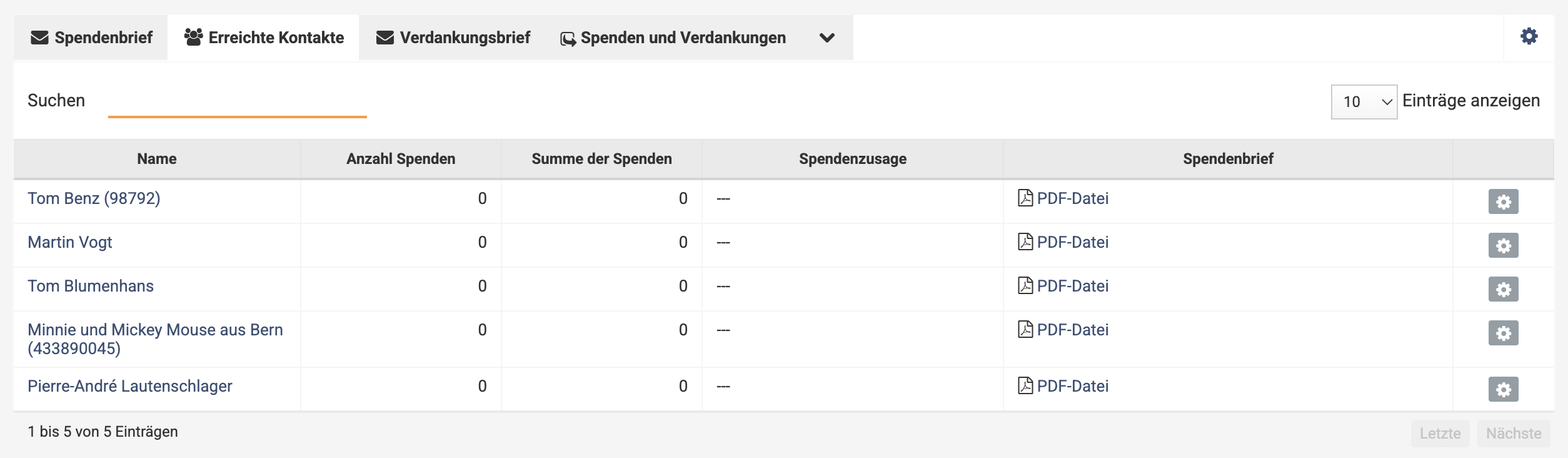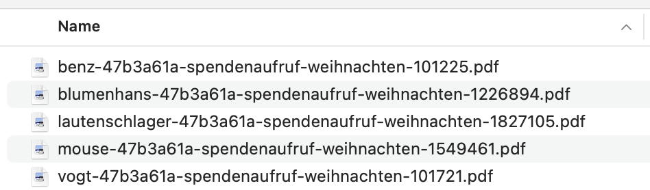 Ein Archiv mit Spendenbriefen könnte bspw. folgende PDF-Dateien enthalten (aufsteigend nach Empfängernamen sortiert):